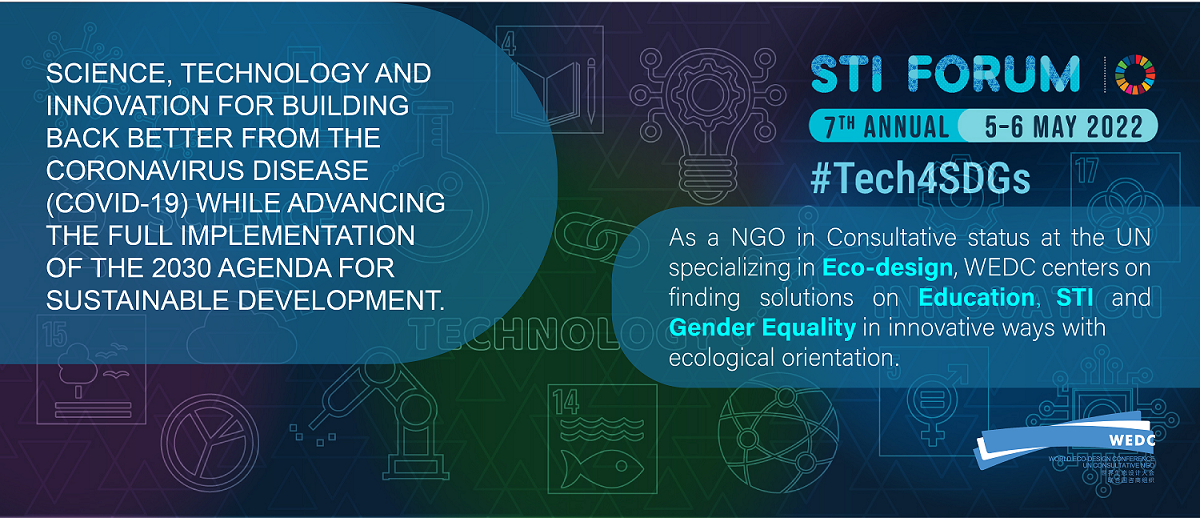 第七届联合国年度科学、技术与创新促进可持续发展目标多利益攸方论坛(STI论坛)于2022年5月5-6日以线上的形式举行。本次论坛由联合国科学、技术与创新促进可持续发展目标跨机构任务小组主办。此次论坛主题是“科技创新助力后疫情重建,同时推动全面落实2030年可持续发展议程”,参会人员包括联合国官员、各国政府间组织代表、非政府组织代表及相关领域专家等。世界生态设计大会受联合国经济和社会事务部邀请参加了本次论坛,并围绕“新冠肺炎疫情形势下的科学、技术与创新”、“教育创新:迈向优质教育与维护共同利益”两大主题提交了书面意见,表明了世界生态设计大会在新冠肺炎疫情期间为推动实现2030可持续发展目标所作的努力。